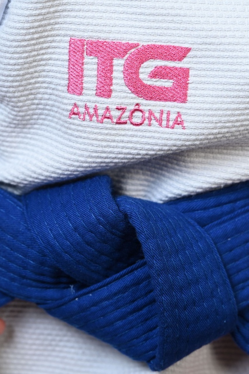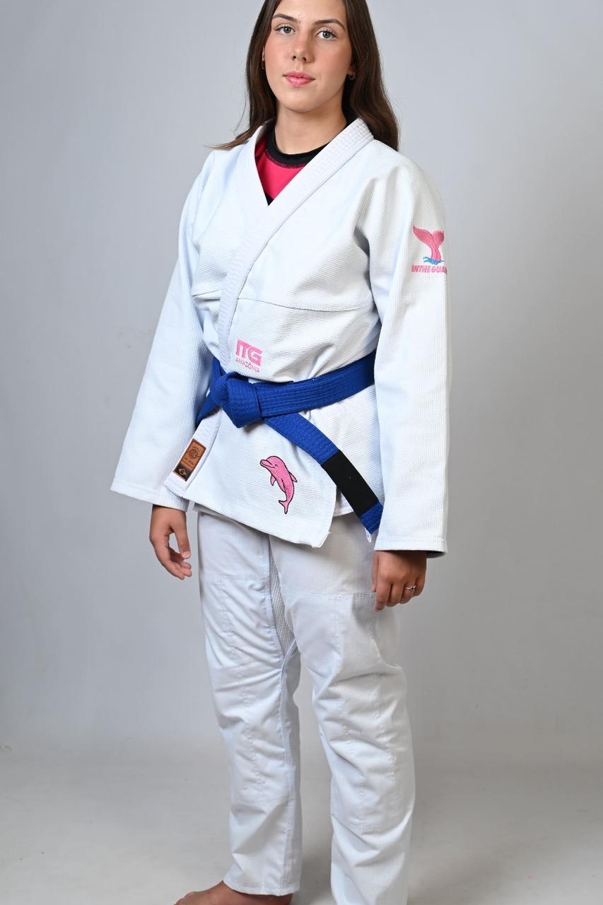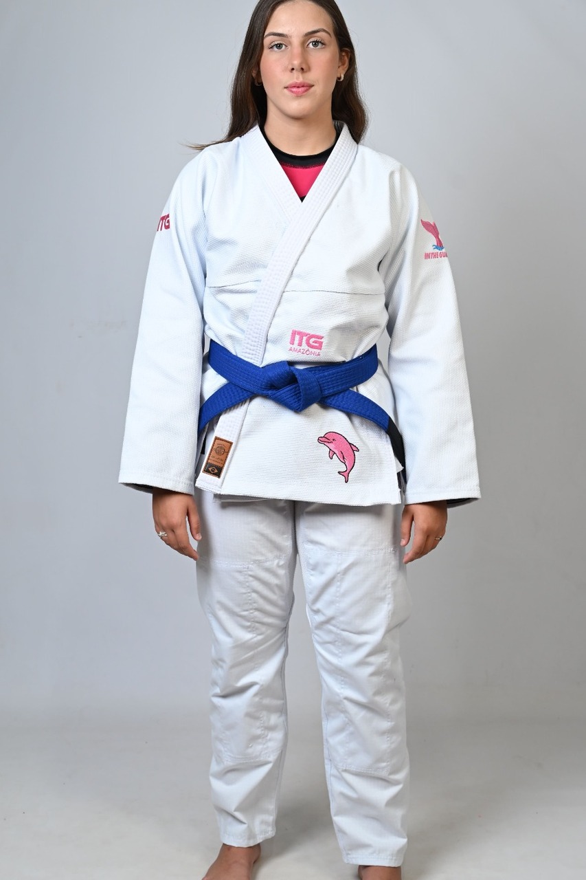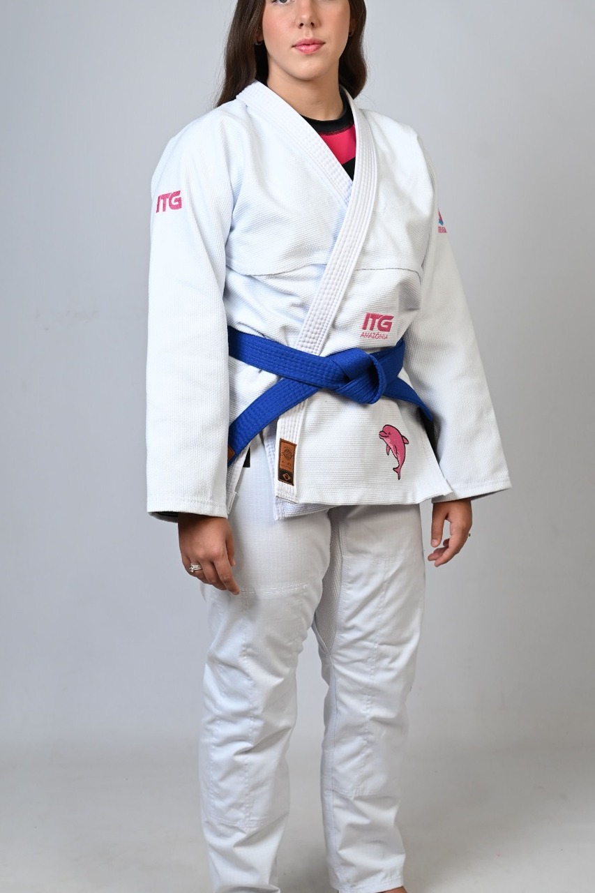 Kimono In The Guard Feminino, Amazônia BOTO ROSA -Branco