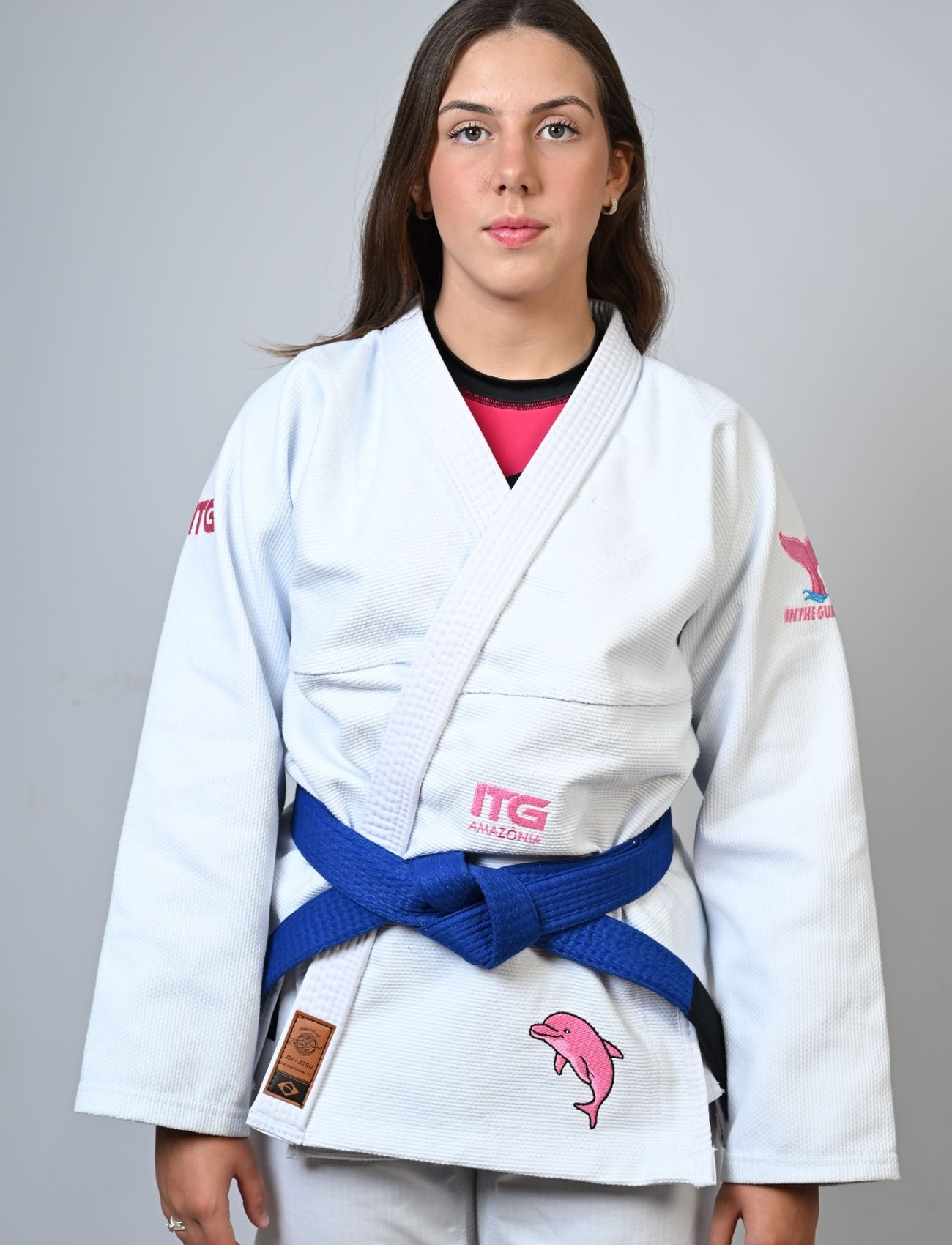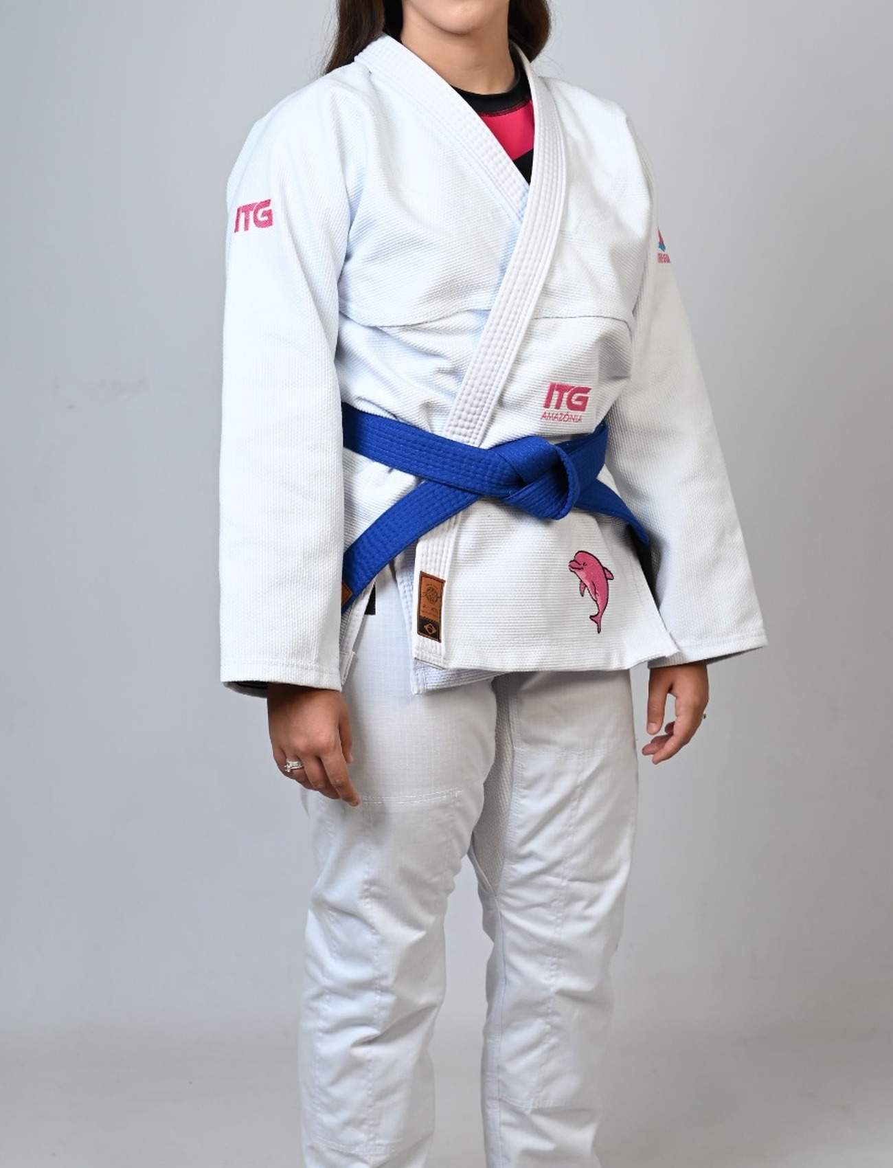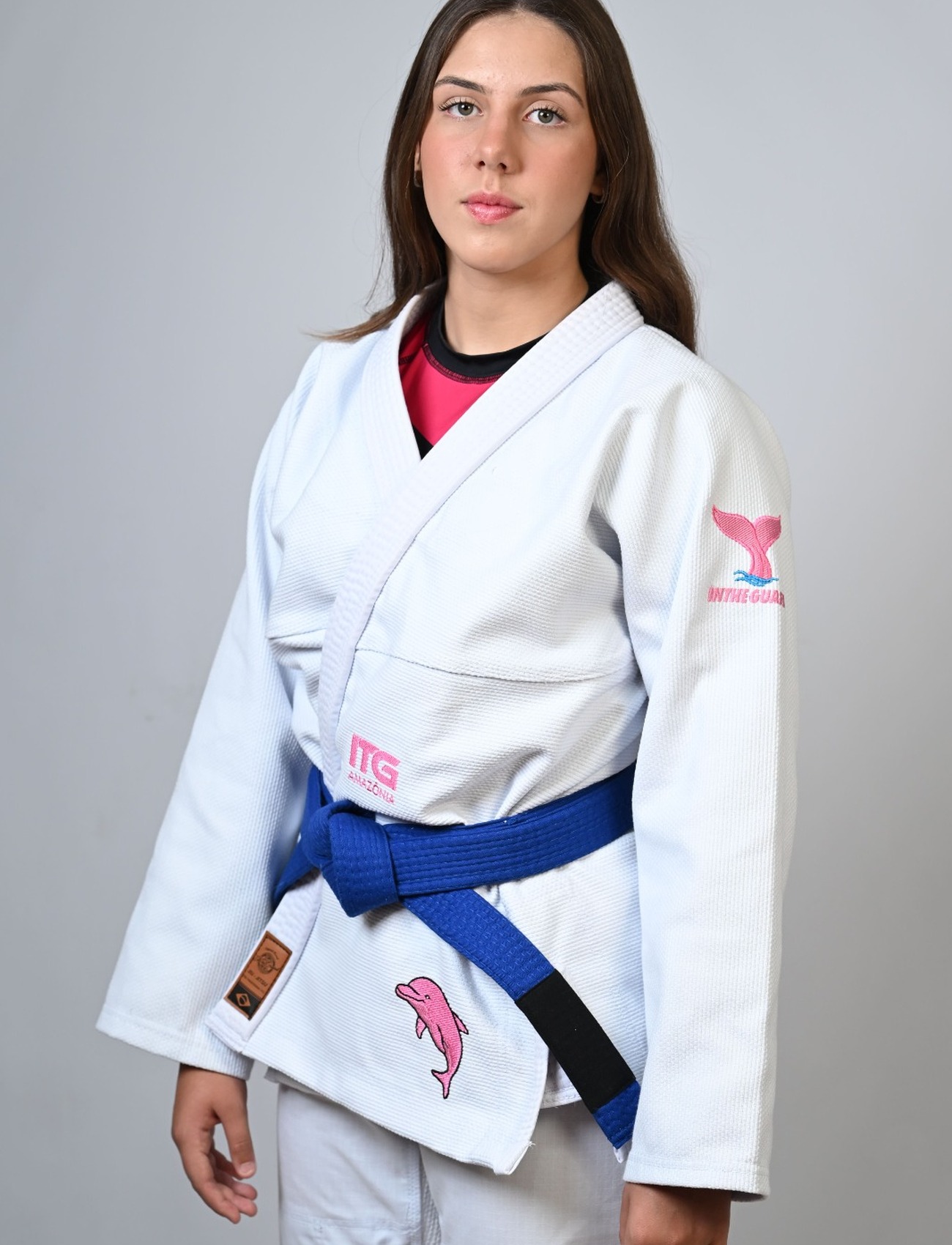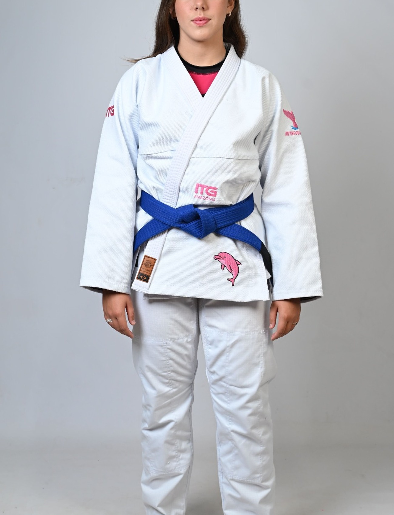 Kimono In The Guard Feminino, Amazônia BOTO ROSA -Branco