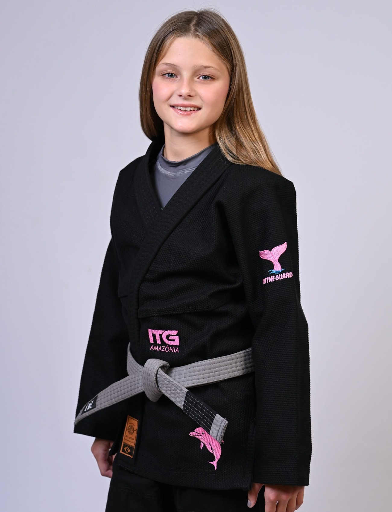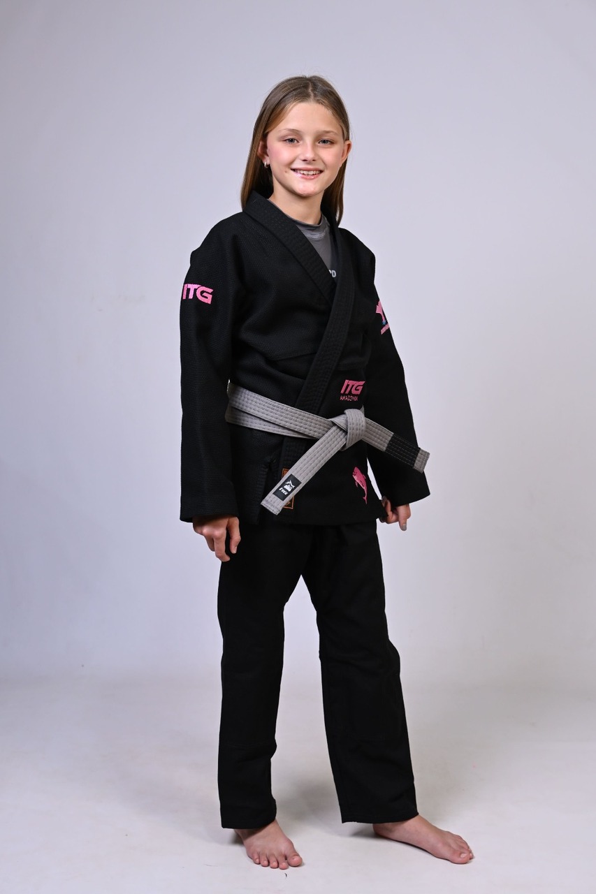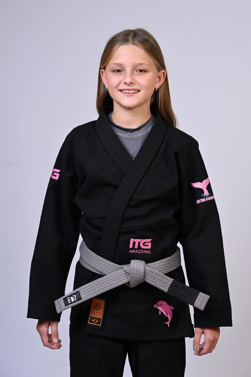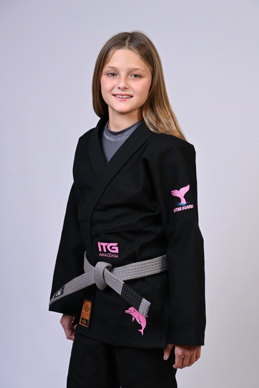 Kimono Infantil In The Guard BOTO ROSA Feminino. padrão CBJJ - Preto