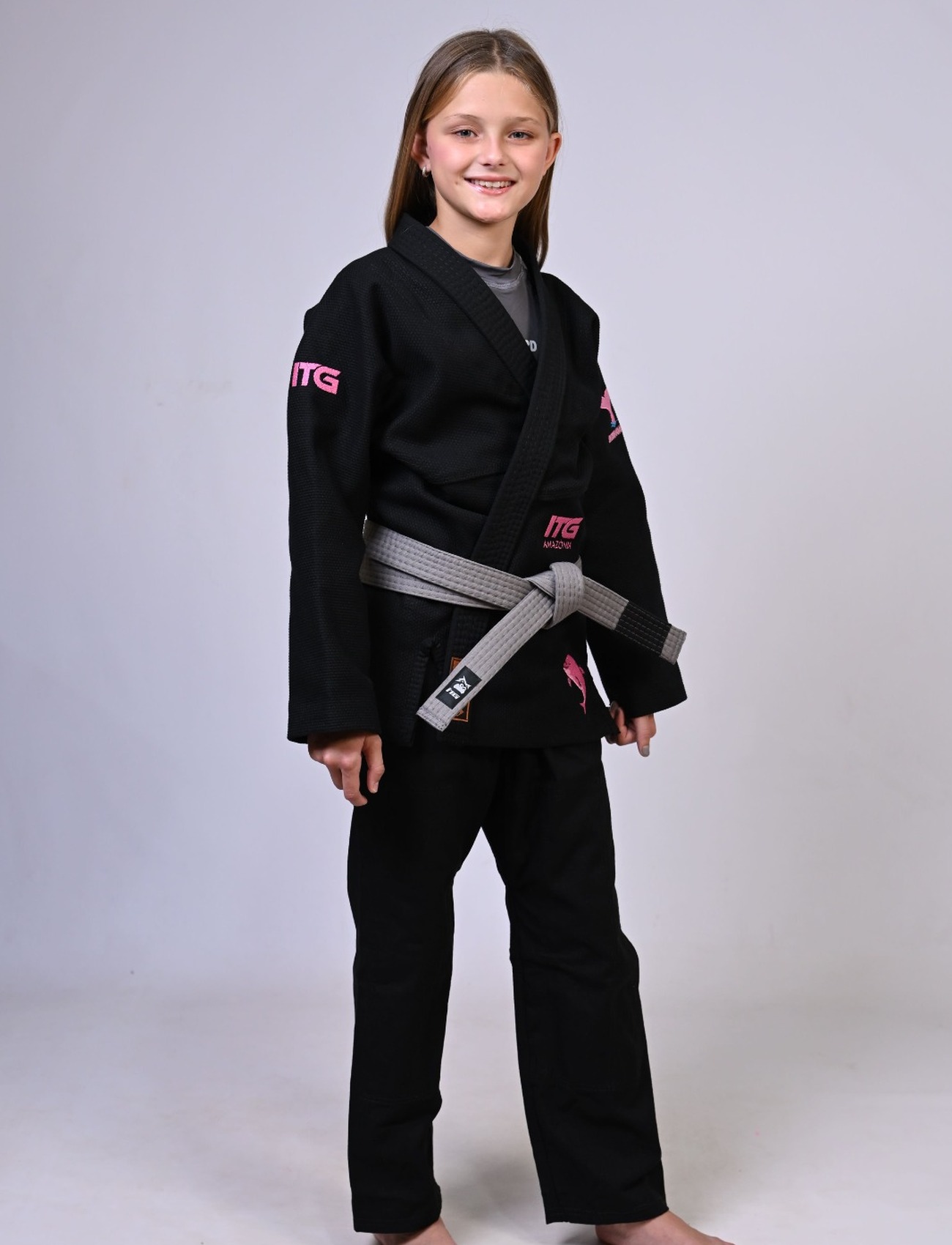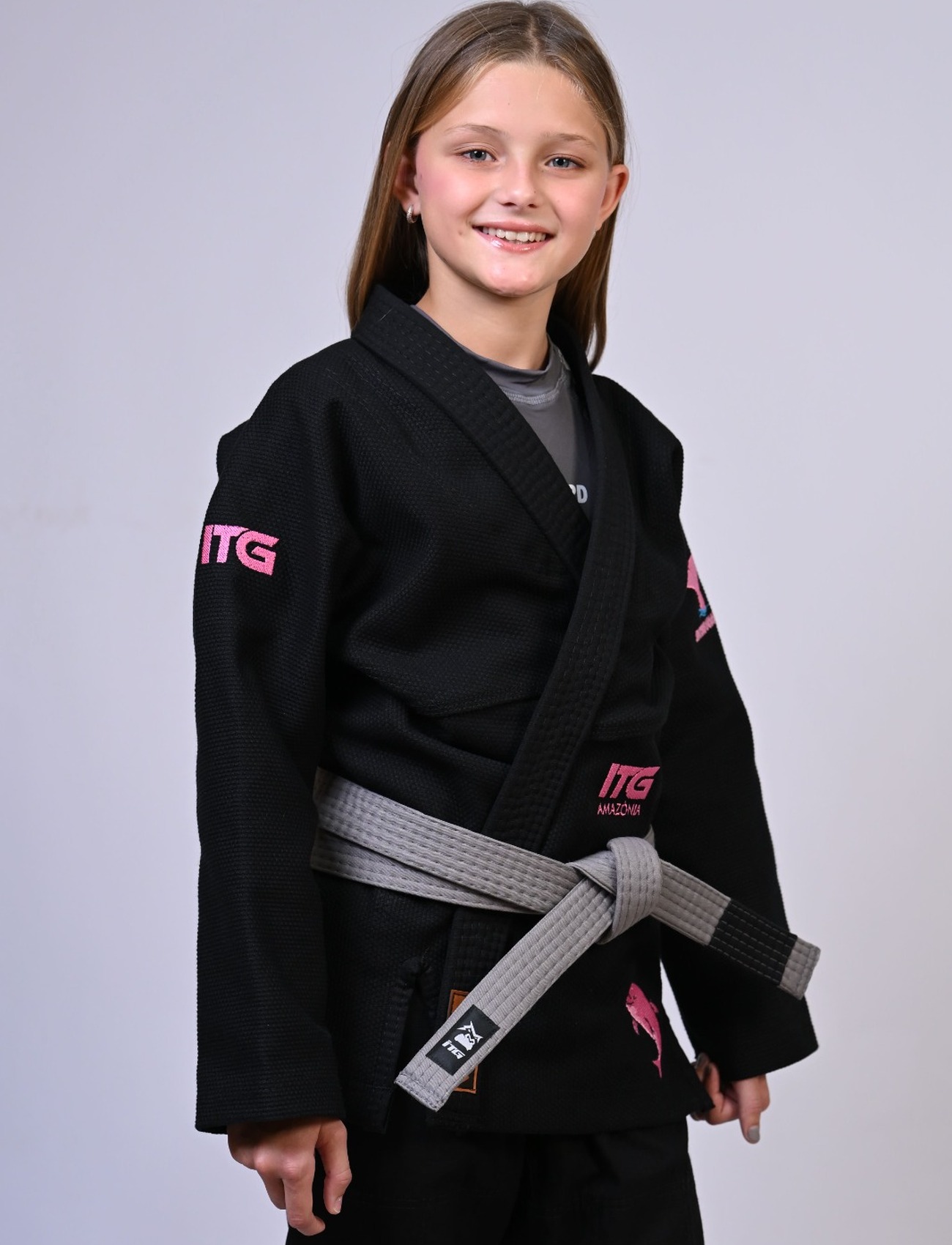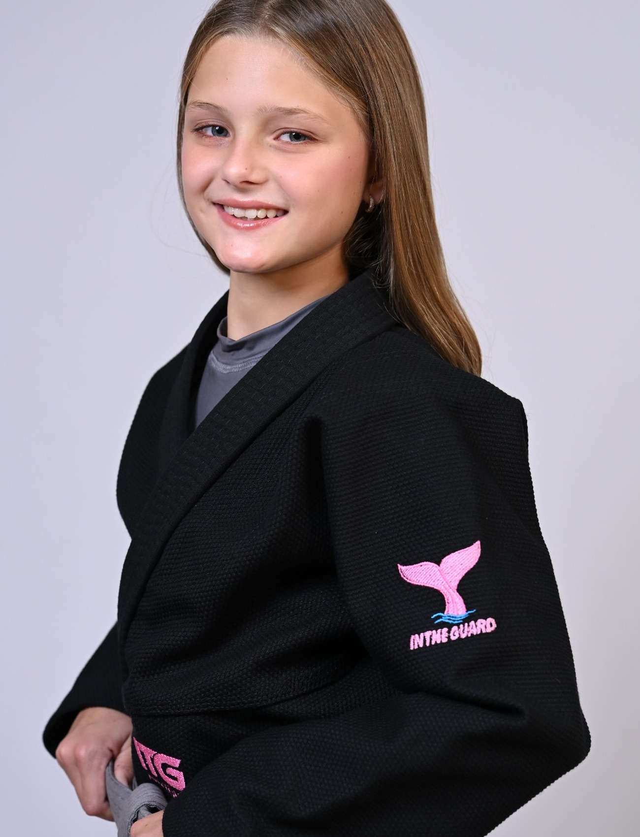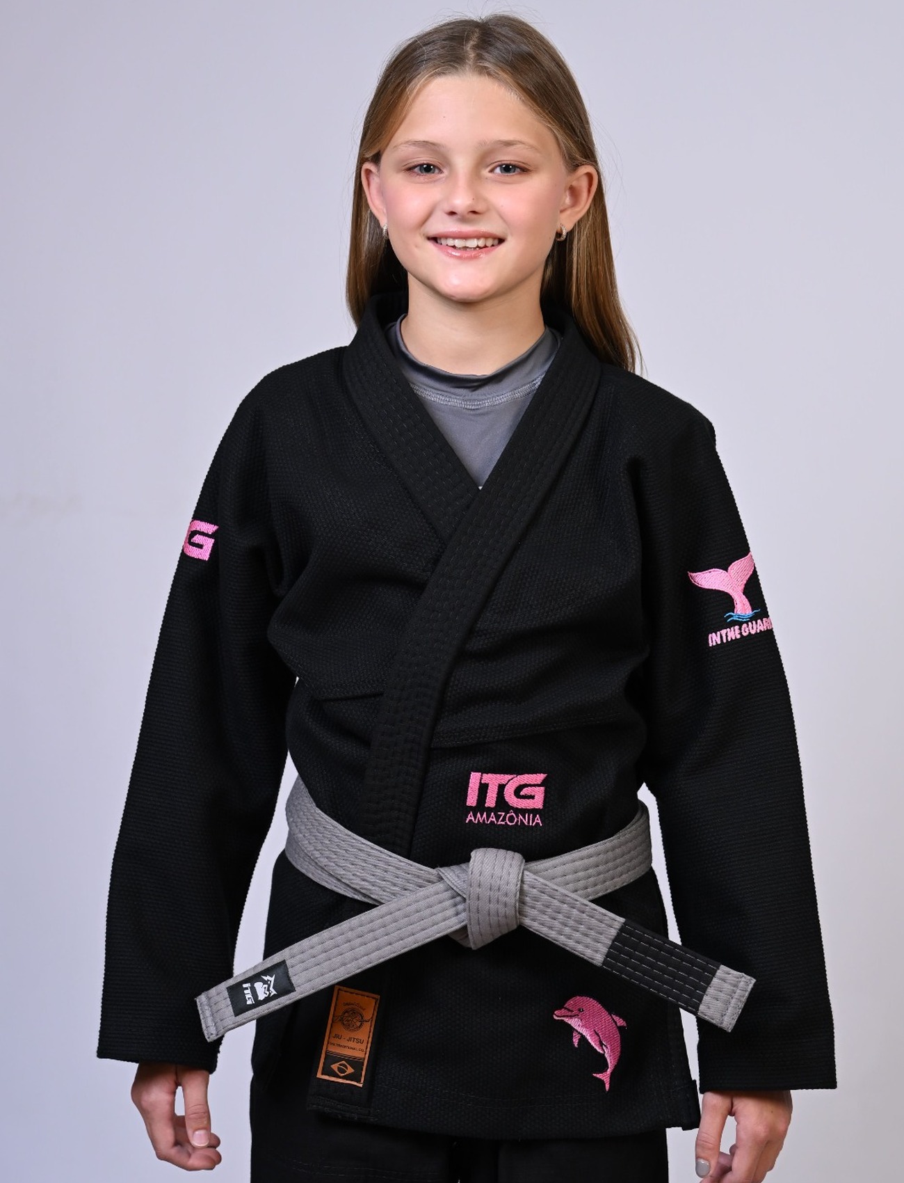 Kimono Infantil In The Guard BOTO ROSA Feminino. padrão CBJJ - Preto