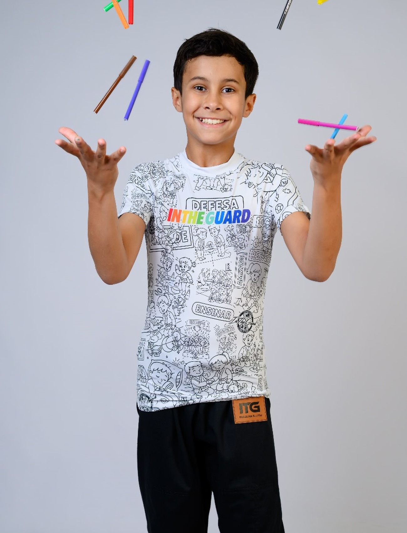 Cuidar alguns detalhes importantes, USAR SOMENTE TINTA HIDROGRAFICA PARA QUE POSSA LAVAR E SAIR TODA A TINTA, NÃO ACONCELHAMOS USAR ELAS EM TREINOS INTENSOS POIS A TINTA É HIDROGRAFICA E VAI SAIR COM O SUOR E TER CONTATO COM A PELE DAS CRIANÇAS, NÃO RECOMENDAMOS O USO QUE TENHA CONTATO DIRETO COM ROUPAS OU KIMONOS BRANCOS OU CORES CLARAS E ATÉ MESMO TATAME BRANCO OU CLARO, POIS A RASH GOODS PODE SOLTAR A TINTA DA CANETINHA E MIGRAR PARA ESSES MATERIAIS MESMO A TINTA SAINDO COM ÁGUA NÃO ACONSELHAMOS O USO. MATERIAL DESENVOLVIDO PARA PASSEIO E INTERASSÃO, NÃO RECOMENDAMOS PARA TREINOS INTENSOS E COMPETIÇÕES.